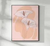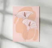 Questo elegante disegno presenta due fiori stilizzati nei toni tenui del rosa e del beige, circondati da delicate forme organiche. Emana leggerezza ed eleganza ed è perfetto per l'arte da parete, i cuscini o le tazze. Ideale per gli amanti dell'arte floreale moderna che desiderano creare un ambiente naturale e rilassante. Un'attrazione senza tempo per la vostra casa.