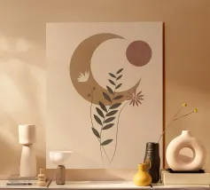 Paesaggio desertico bohémien da parete nei colori beige, arancione e marrone. Una stampa tranquilla e meditativa per un arredamento d'anima.