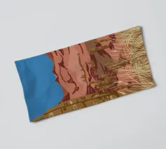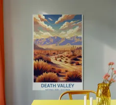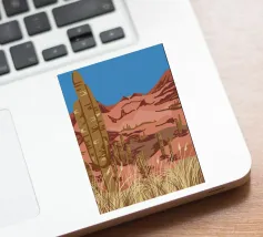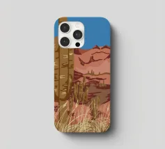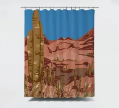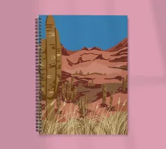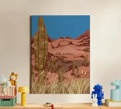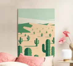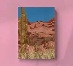 Un paesaggio desertico di cactus e montagne nei toni della terra