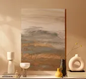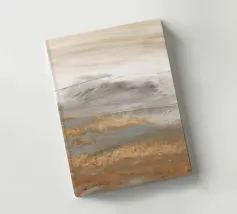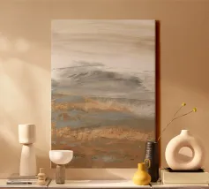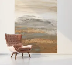 Paesaggio desertico astratto con pennellate leggere e fluide e linee gestuali in colori naturali.