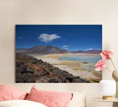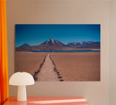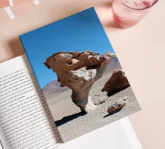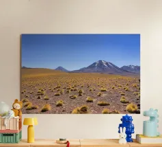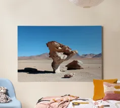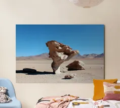 Un paesaggio desertico con un albero spoglio e rocce sotto un cielo blu intenso, catturato nel cuore del deserto di Atacama in Cile. Una scena cruda e maestosa al tempo stesso, che illustra la potenza della natura e l'immensità del paesaggio sudamericano.