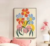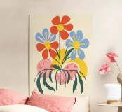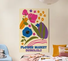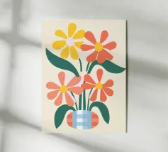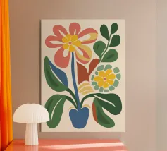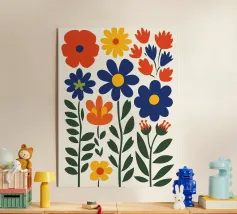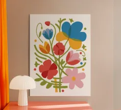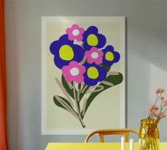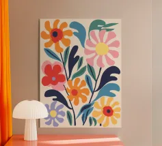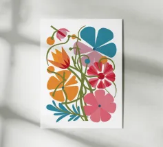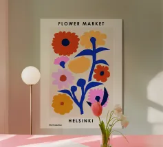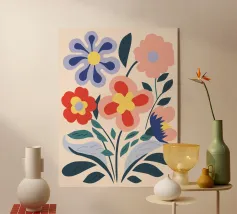 Questo vivace disegno floreale combina colori vivaci e forme moderne: Fiori rossi e blu con un centro giallo solare su un allegro sfondo rosa e giallo. Un motivo fresco ed elegante che unisce il fascino retrò degli anni '70 alla chiarezza scandinava. Perfetto come murale, tazza, cuscino o cover per cellulare, per gli amanti dei motivi floreali colorati, delle decorazioni di metà secolo e degli accessori moderni per la casa. Un richiamo ideale per il soggiorno, la camera da letto o l'ufficio e un regalo affascinante per gli amanti dell'arte e dei fiori.