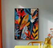 Un vibrante fuoco d'artificio di colori composto da forme floreali boho ed elementi astratti Quest'opera d'arte combina la forza espressiva del fauvismo con la giocosa leggerezza della grafica moderna. La composizione ad alto contrasto è come un crescendo musicale in rosso, blu, arancione e bianco - vibrante, pulsante, pieno di energia, positivo e ottimista. Una vera e propria affermazione per ambienti particolarmente creativi, che porta sfrenata gioia di vivere e movimento su qualsiasi parete. Funziona ugualmente bene in ambienti chiari e scuri.