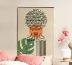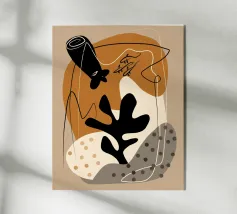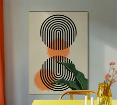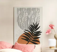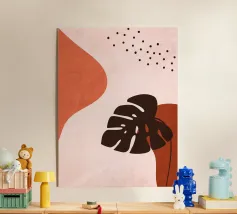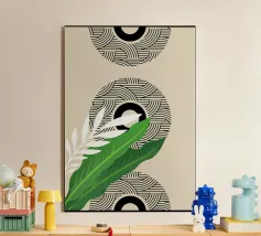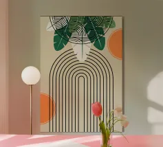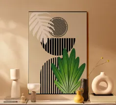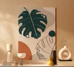 Un design artistico con foglie di monstera minimaliste in contrasto bianco e nero, abbinate a un caldo semicerchio in terracotta. L'armoniosa fusione di forme naturali e linee moderne fa di questo motivo il pezzo forte di ogni casa. La palette di colori ridotta e gli elementi grafici creano un look contemporaneo ed elegante. Perfetto per opere d'arte da parete, cuscini, tazze o cover per cellulari. Questo disegno conferisce un tocco boho chic e botanico al vostro spazio abitativo o lavorativo ed è ideale anche come regalo per gli amanti della natura e del design.