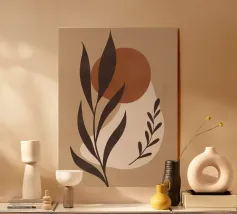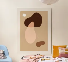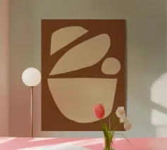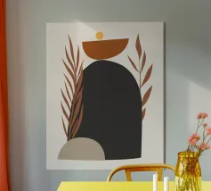 Quest'opera d'arte presenta una miscela di forme astratte in toni caldi, incorporando forme e texture naturali. Evoca un senso di calma e creatività, perfetto per gli spazi contemporanei.