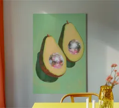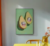 Aggiungete un po' di groove al vostro spazio con questa vivace stampa disco avocado. Un mix perfetto di divertimento e freschezza.