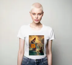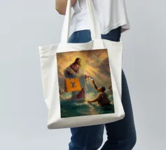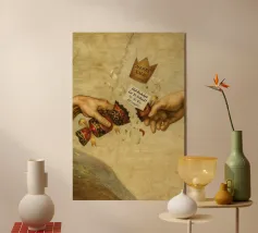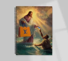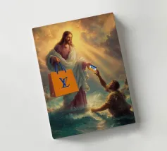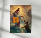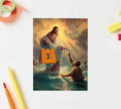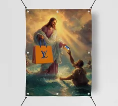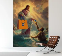"Una visione divina trasformata in satira moderna, dove il sacro distribuisce lusso e credito come se fossero miracoli del XXI secolo. La scena trasforma un momento epico in un gesto consumistico che mette giocosamente in discussione la fede, il potere e il branding".