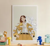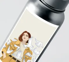 Woman with birds plexiglass