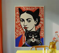 Donna e gatto plexiglass