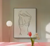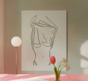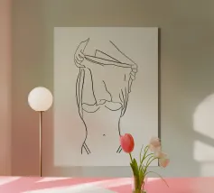 Questa stampa fine art mostra una donna astratta che si tira su la maglietta in uno stile minimalista. Il design moderno combina eleganza e sicurezza di sé, perfetto per soggiorni minimalisti, camere da letto o pareti di gallerie. Un'attrazione senza tempo per gli amanti dell'arte moderna.