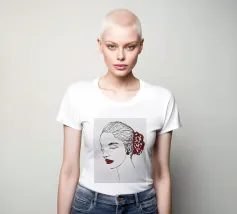 disegno fotografico con penna e acrilico di un volto di donna