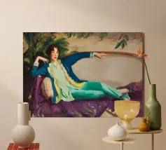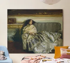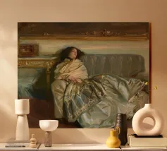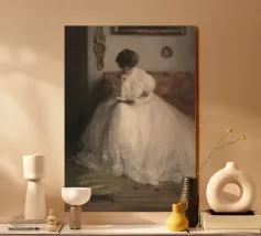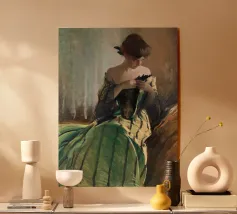 Giovane donna decadente dopo il ballo - Stampa d'arte digitale: Questa elegante opera d'arte cattura un momento di bellezza riflessiva, ritraendo una giovane donna in uno stile riccamente espressivo. Con toni morbidi e dettagli intricati, l'opera trasmette raffinatezza e profondità emotiva, rendendola perfetta per gli amanti dell'estetica decadente di ispirazione vintage. Offerta come stampa di alta qualità, quest'opera d'arte conferisce un fascino senza tempo agli interni, fondendo l'eleganza classica con l'accessibilità moderna per l'arredamento delle pareti e le collezioni personali.