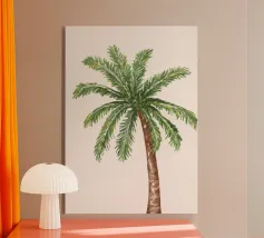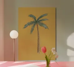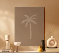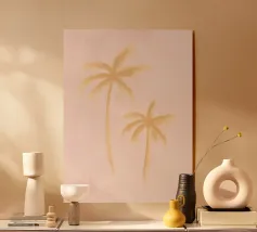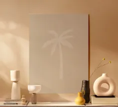 Sognante boho tranquillo costiero astratto palma da cocco Tranquillo isola bali vibes neutro colorato pastello beige crema bianco giallo ocra astratto pittura minimalista