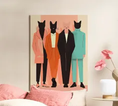 Un ritratto di gruppo che gioca con l'identità, lo stile e la tranquilla sicurezza. Forme familiari vestite con silhouette sartoriali stanno insieme, unite ma inconfondibilmente individuali. La tavolozza tenue e la composizione pulita enfatizzano la presenza rispetto all'espressione: una dichiarazione visiva sull'appartenenza, l'atteggiamento e il linguaggio non detto dello stile.