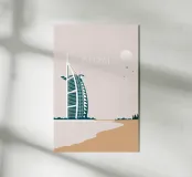 Aggiungete un tocco di lusso e di stile iconico ai vostri interni con questa stampa Burj Al Arab! Questo design accattivante mostra una rappresentazione stilizzata del famoso Burj Al Arab, uno degli edifici più iconici di Dubai. Questa opera d'arte è la scelta perfetta per gli amanti dell'architettura, i viaggiatori e gli appassionati di arte moderna.