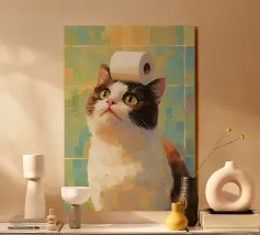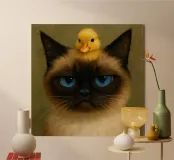 Un severo gatto soriano siede con regale disappunto, incoronato da un allegro anatroccolo giallo. Questa stampa digitale in stile dipinto a olio fonde l'illuminazione classica del ritratto con l'umorismo dell'Assurdismo elegante: perfetta per gli amanti dei gatti, per i collezionisti di arte assurda o per chiunque apprezzi l'arguzia servita con un tocco di arte raffinata. - Download digitale ad alta risoluzione - Illuminazione drammatica in stile museale e texture pittorica - Ideale per l'arte da parete, la decorazione della scrivania o un regalo unico con personalità