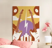Le illustrazioni dettagliate ed espressive delle due chitarre sono catturate con un tocco artistico sorprendente.