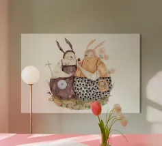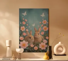 Due coniglietti di Pasqua in un mare di fiori plexiglass