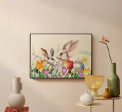 Due coniglietti di Pasqua in un mare di fiori plexiglass