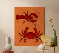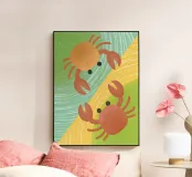 Allegra illustrazione con due simpatici granchi che interagiscono tra loro, irradiando lo spirito della divertente vita marina.
