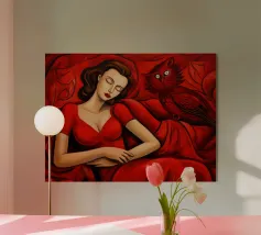 Una giovane donna in lingerie rossa