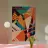 Un'energica composizione astratta in cui audaci forme geometriche, linee e motivi in arancione, verde acqua e nero si scontrano e si sovrappongono, creando un senso di movimento dinamico.