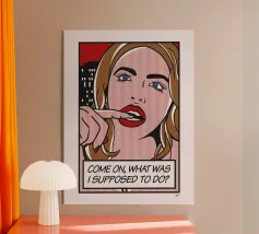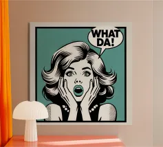 Audace e ribelle, questo poster in stile fumetto presenta un volto femminile di grande impatto, con colori vivaci e dettagli espressivi. Il testo in grassetto "So What?" aggiunge un tocco di attitudine e di potere, rendendolo un pezzo perfetto per gli spazi moderni.