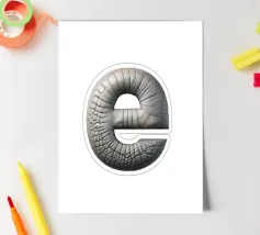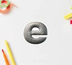 Vi presentiamo la "E di elefante". - un design unico e personalizzabile che fonde in modo creativo la tipografia con la natura. Questo pezzo accattivante è caratterizzato da un elefante che assume la forma della lettera "E" e rappresenta la scelta perfetta per tutti coloro che amano gli animali o che amano i disegni artistici e stravaganti.