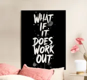 Questa sorprendente arte digitale presenta la frase potente e ottimista "WHAT IF IT DOES WORK OUT", resa in grassetto, con caratteri bianchi su uno sfondo nero. Lo stile delle pennellate conferisce al testo un aspetto dinamico e dipinto a mano, mentre i punti bianchi sparsi e i sottili schizzi di inchiostro grigio aggiungono profondità e interesse visivo. Questo pezzo serve come promemoria ispiratore per abbracciare la speranza e considerare i risultati positivi.