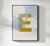 E-TYPEFACE in un design senza tempo - poster tipografico con colori vivaci e un gioco di forme sullo sfondo.