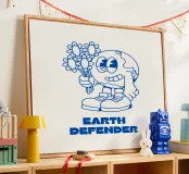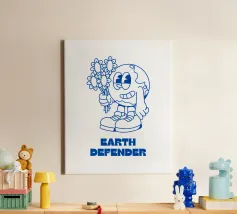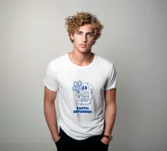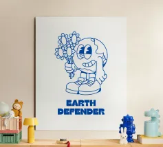 Descrizione del prodotto: Proteggete il nostro pianeta e fate una dichiarazione di stile con questo design creativo! Il motivo "Earth Defender" mostra un'allegra Terra in cartone animato con in mano un mazzo di fiori, simbolo di consapevolezza ambientale, gentilezza e impegno per un mondo migliore. Le accattivanti linee blu su sfondo bianco conferiscono al disegno un'estetica moderna e pulita. Dettagli: Stile del design: grafica giocosa a cartoni animati con tema ambientale. Colori: Blu su bianco per un look accattivante e fresco. Messaggio: Sii un difensore della terra.