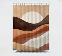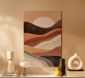 Un paesaggio astratto calmo e sofisticato, composto da colline fluide e stratificate nei toni della terra - terracotta, ocra, arenaria e crema. Questa composizione minimalista evoca un senso di calore e di armonia naturale, perfetta per gli interni moderni che cercano un'atmosfera solida e serena.