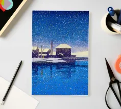 Ebisu di Kawase Hasui raffigura una tranquilla veduta del quartiere di Ebisu, con strade tranquille, edifici tradizionali e una luce soffusa che si riflette sull'ambiente circostante. L'uso delicato del colore, delle ombre e della prospettiva atmosferica di Hasui evoca uno stato d'animo sereno e contemplativo, catturando il fascino tranquillo della vita quotidiana nella Tokyo di inizio Novecento. Ideale per gli amanti delle stampe giapponesi su legno, dei paesaggi urbani shin-hanga e delle scene urbane tranquille, quest'opera d'arte conferisce eleganza, armonia e bellezza senza tempo a qualsiasi interno.