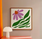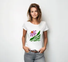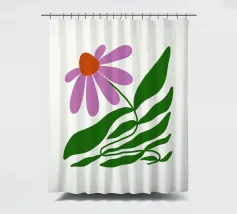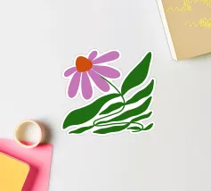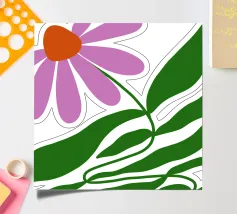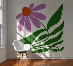 Elegante e vibrante, questa illustrazione mostra un fiore di echinacea viola con un centro arancione brillante e foglie fresche verde smeraldo. I ricchi petali viola donano un raffinato tocco di colore, rendendo quest'opera d'arte un perfetto connubio tra stile moderno e fascino botanico. Ideale per interni contemporanei e spazi eclettici che celebrano il design ispirato alla natura.