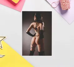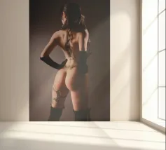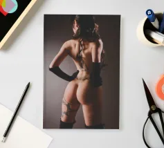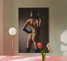 Uno scatto di nudo artistico della schiena e delle gambe di una modella tatuata