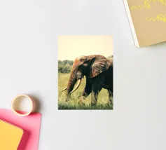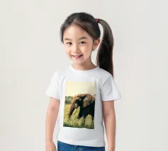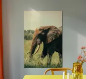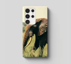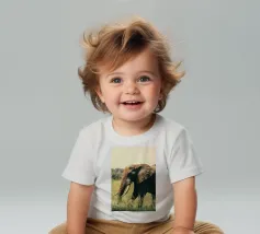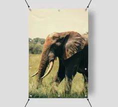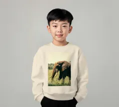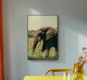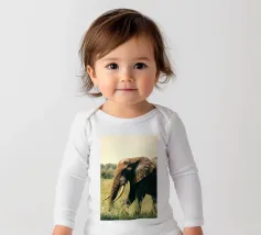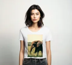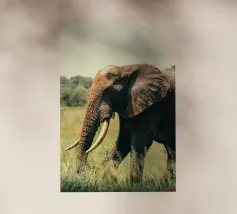 L'elefante ondeggia lentamente il suo corpo massiccio mentre pascola, tirando su ciuffi di erba verde fresca con la sua forte proboscide. I suoi occhi dolci e i suoi movimenti calmi riflettono una forza tranquilla, mentre il ritmo del suo nutrimento riecheggia la pacifica armonia della natura selvaggia".