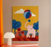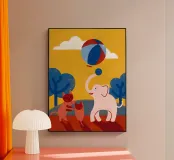 L'illustrazione "Elephant and Cat" mostra un'amicizia unica tra un elefante e un gatto. Questo disegno combina elementi carini e affascinanti.