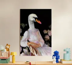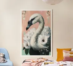 Elegant Swan with Coral Bow Art Print plexiglass