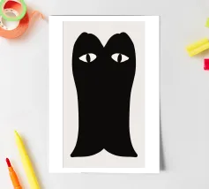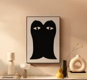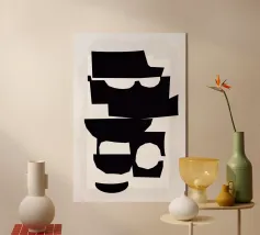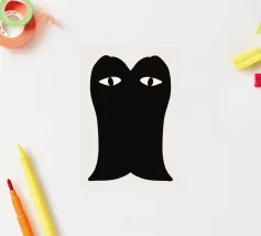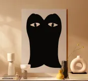 Forme semplici su uno sfondo neutro, quasi silenziose, che formano la sagoma di un fantasma. Un'opera contemplativa.