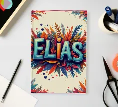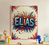 Un nome biblico incastonato in un motivo floreale dai colori vivaci.
