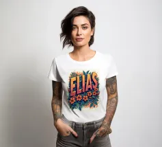 Un nome biblico incastonato in un motivo floreale dai colori vivaci.