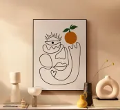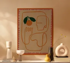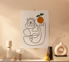"Elmar" è un'affascinante opera d'arte raffigurante un volto con in mano un'arancia, che emana un'atmosfera giocosa ed estiva. Il suo design minimalista e la sua composizione spensierata lo rendono un'aggiunta perfetta a qualsiasi casa, soprattutto nei mesi più caldi. Con le sue linee semplici e il tocco di colore vivace, "Elmar" trasmette un senso di freschezza e gioia, rendendola una stampa estiva ideale per il vostro spazio.