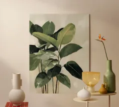 Questa opera d'arte botanica contemporanea presenta foglie sovradimensionate di colore verde smeraldo rese in un raffinato stile minimalista. Le texture espressive del pennello si fondono con morbidi strati traslucidi, creando profondità e un senso di tranquillo movimento. Lo sfondo neutro permette al fogliame di respirare, evocando calma, equilibrio ed eleganza organica. Con la sua estetica pittorica moderna e la tavolozza rilassante, questo pezzo è ideale per interni contemporanei, scandinavi o ispirati alla natura che cercano un senso di quiete e rinnovamento.