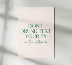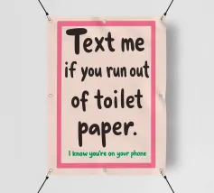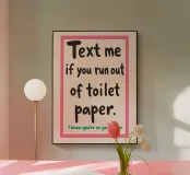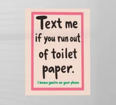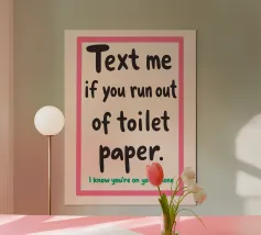 Questo cartello umoristico stampabile per il bagno è il complemento d'arredo perfetto per qualsiasi casa, appartamento o spazio abitativo condiviso. Caratterizzato dal testo in grassetto e simpatico "Mandami un messaggio se finisci la carta igienica. So che sei al telefono", questo download digitale aggiunge un tocco spensierato e moderno al vostro bagno. Progettato con un carattere elegante e giocoso e con una combinazione di colori rosa e beige, è un eccellente regalo di gag per le feste di inaugurazione della casa o un'aggiunta unica alla parete per motivare le buone abitudini di rifornimento della carta igienica. Scaricate, stampate e incorniciate questo poster digitale di alta qualità per il bagno.