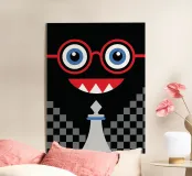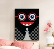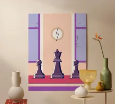 L'illustrazione "Emoticons and Chess" presenta un design unico e creativo che combina elementi di emoticon (emoji) con il gioco degli scacchi.