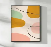 Estetica stampa astratta caratterizzata da morbide forme organiche nei caldi toni della terra con una giocosa linea nera. Perfetta per aggiungere un'atmosfera moderna e rilassata a qualsiasi spazio. Un mix trendy di minimalismo e flusso artistico!