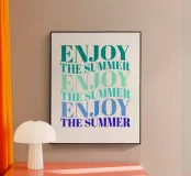 Enjoy the summer. Happy vibes with typography. plexiglass