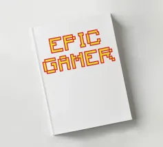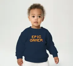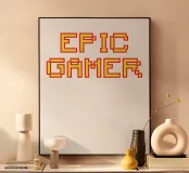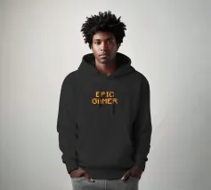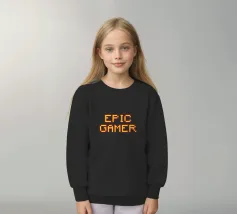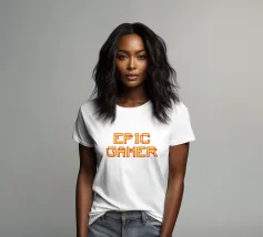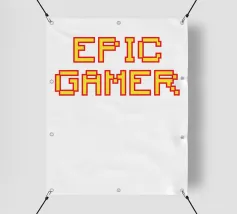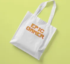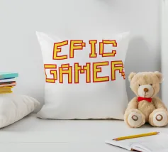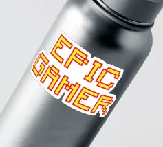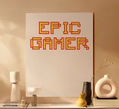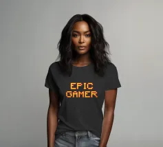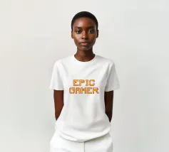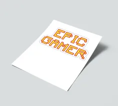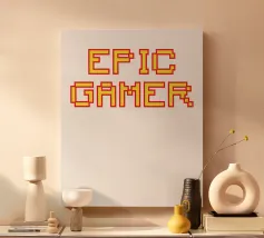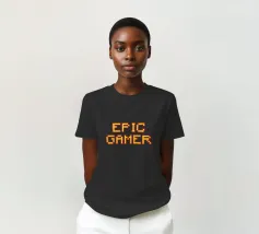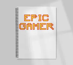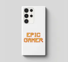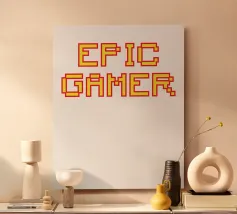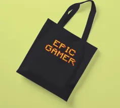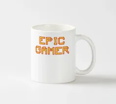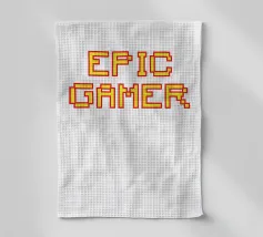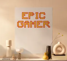 Set against a solid dark red background, the bold yellow text "EPIC GAMER" is displayed in a pixelated font reminiscent of classic video games. The minimalist design emphasizes the text, conveying a strong message for gaming enthusiasts.