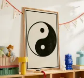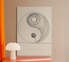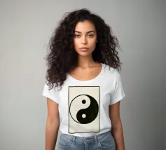 Un disegno yin yang in bianco e nero senza tempo che irradia armonia, equilibrio e il flusso calmo degli opposti uniti.