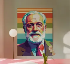 Celebrate il genio letterario di Ernest Hemingway con questo straordinario disegno Pop Art di WPAP. Utilizzando audaci forme geometriche e una tavolozza di colori vivaci, questa opera d'arte reinterpreta l'iconico autore in uno stile moderno e astratto. La tecnica WPAP (Wedha's Pop Art Portrait) dà vita all'immagine di Hemingway, catturandone lo spirito avventuroso e il profondo impatto sulla letteratura. Perfetto per gli amanti della letteratura, gli appassionati d'arte e i fan della narrazione classica, questo disegno è un tributo unico a uno dei più celebri scrittori del XX secolo.